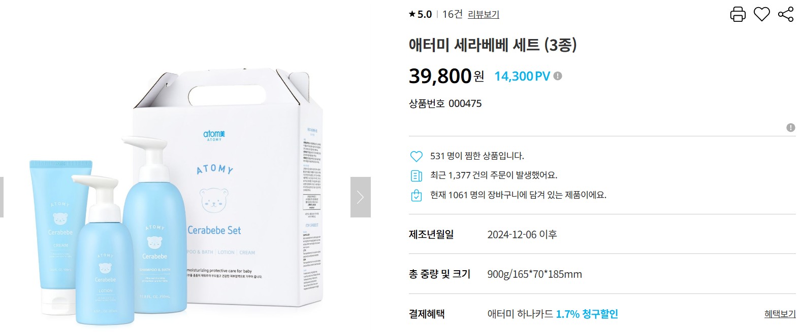 🧴 5. 애터미 세라베베 3종 세트 (39,800원)