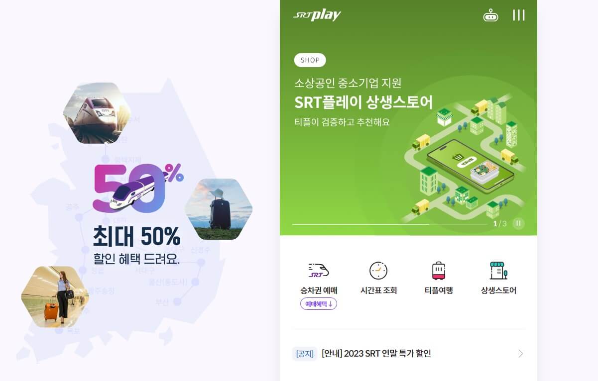 SRT play라는 사이트에서 예매할 경우 ▶ 최대 50% 할인 가능